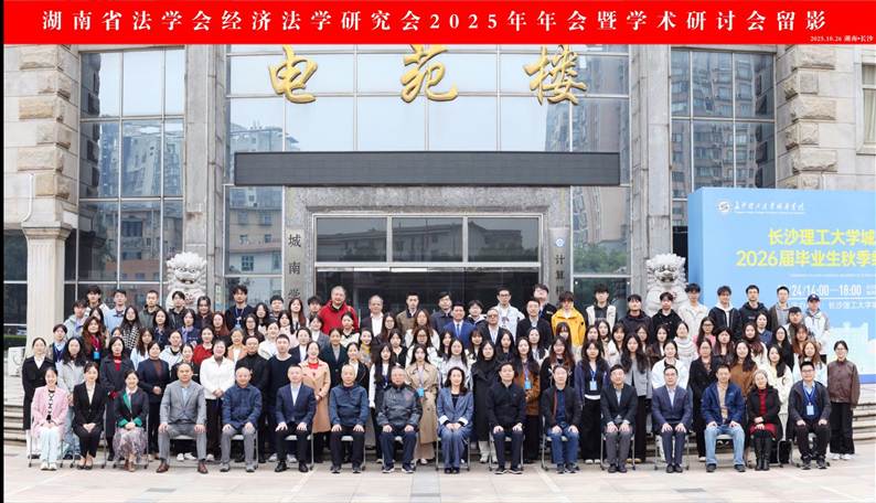 2025年10月26日,湖南省法学会经济法学研究会2025年年会暨学术研讨会在金盆岭校区隆重举行。本次会议由湖南省法学会经济法学研究会主办,法学院承办,湖南中楚律师事务所协办,来自省内外高校、科研院所、司法实务部门及律师行业的百余位专家学者、硕博士研究生参与了会议,围绕经济法领域的前沿议题展开深度研讨。