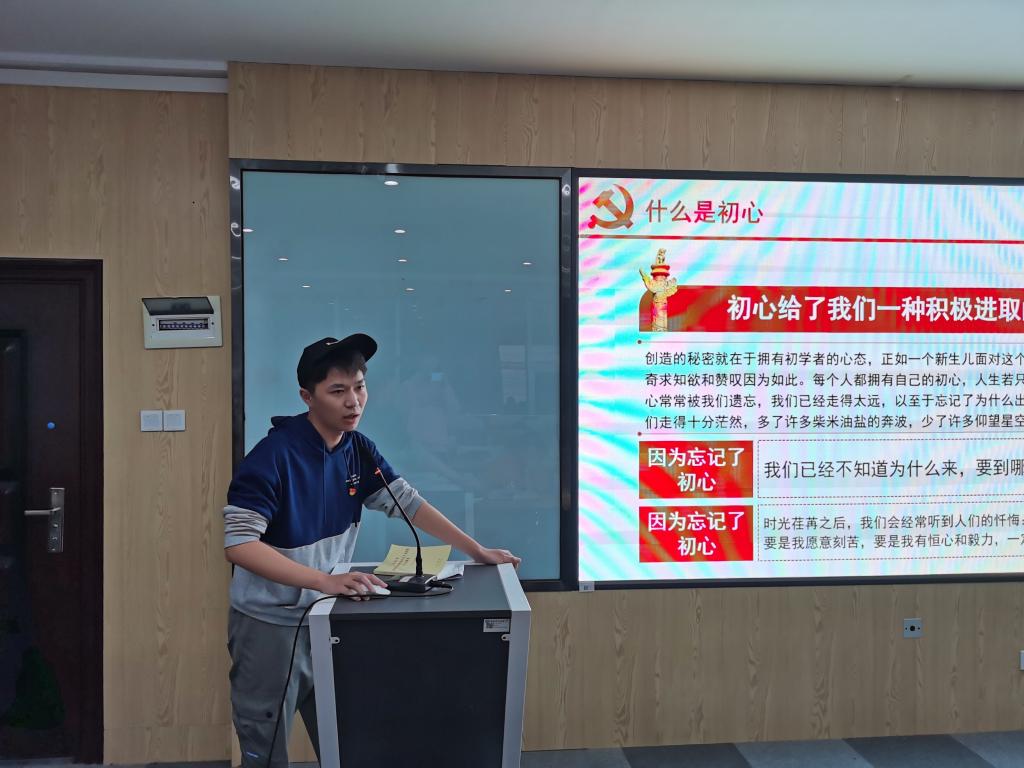 首先,学生党支部副书记张微东致辞,他谈到,我校青年学生应矢志不渝听党话、跟党走,自觉把爱国情、强国志、报国行自觉融入日常生活学习中、争做社会主义合格建设者和可靠接班人。