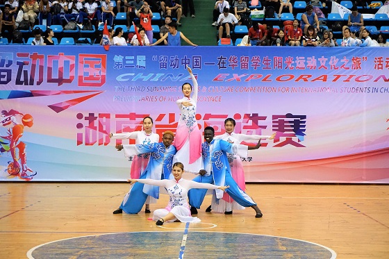 本次湖南赛区海选赛共分为三个项目,分别是体育艺术展示、3X3篮球和定向越野。我校队员在比赛中奋力拼搏,表现突出,展示了学生健康向上的体艺风采。其中,在第一项体育艺术展示中,我校六名留学生带来的京剧排舞《中国脊梁》将中国风的舞蹈展现出铿锵有力又柔和委婉的特点,表演精彩绝伦,赢得了评委们的一致好评,获得了第二名的成绩。在3X3篮球赛中,我校由三名留学生和一名中国学生组成的队伍士气昂扬,配合默契,获得了该项目的第三名。在下午的定向越野赛中,八名留学生和两名中国学生积极参与,运用在集训中学习到的定向越野和中国文化知识,稳定发挥,准确快速地完成了比赛,取得了第四名。我校最终名列总分第三名。