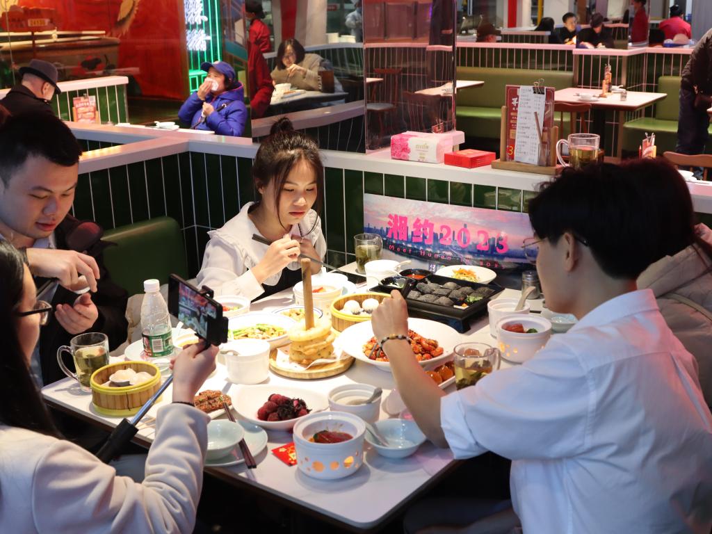 作为旅游网红城市,长沙的各种小吃与大餐享誉国内外,因此长沙美食的介绍也是本次“领略湖湘文化 探寻魅力长沙”的主要内容之一。2月22日上午,国际工学院汉语教师李璐带领的几名中外学生,来到百年名店火宫殿开启直播活动,向参加本次团组项目的100多名海外学员介绍长沙的著名小吃。