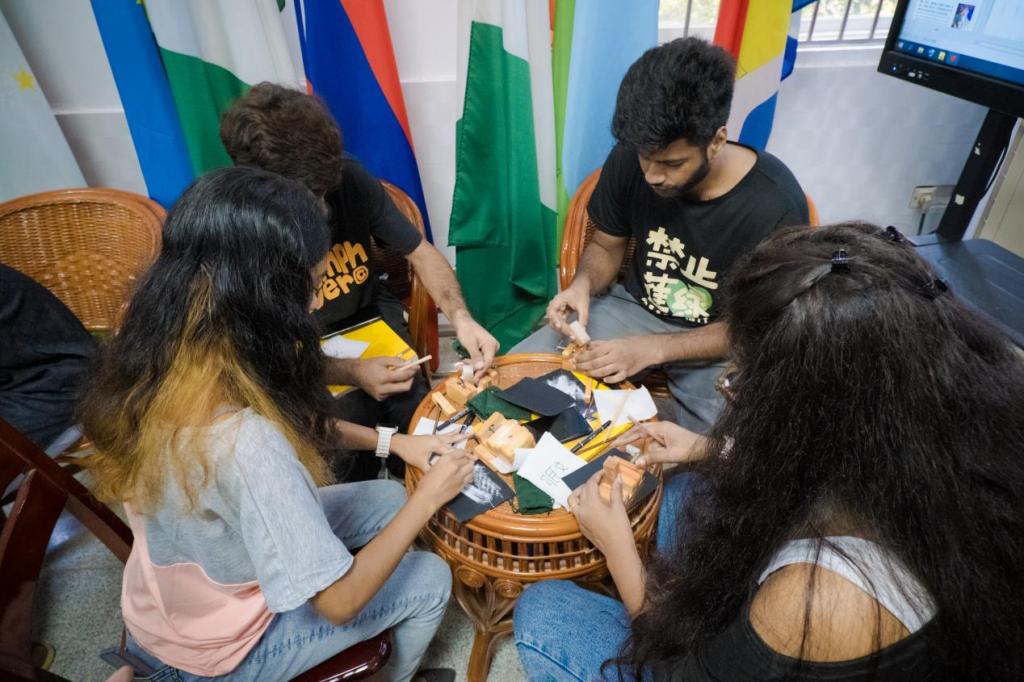 活动以中秋文化作为开场,由国际工学院汉语教研室李璐老师介绍了中秋节的起源、嫦娥奔月神话故事、中秋习俗和与中秋相关的诗句,学生们听得很认真,也特别活跃。随后在宋旦汉字艺术博物馆张秦老师解说指引下,国际学生以刀代笔体验篆刻,从了解古老的甲骨文,到写自己的中国姓氏、篆刻印石、盖印,共同完成“中秋快乐”,将友谊刻进石头里。最后,大家一起切月饼,尝月饼,相道中秋祝福。