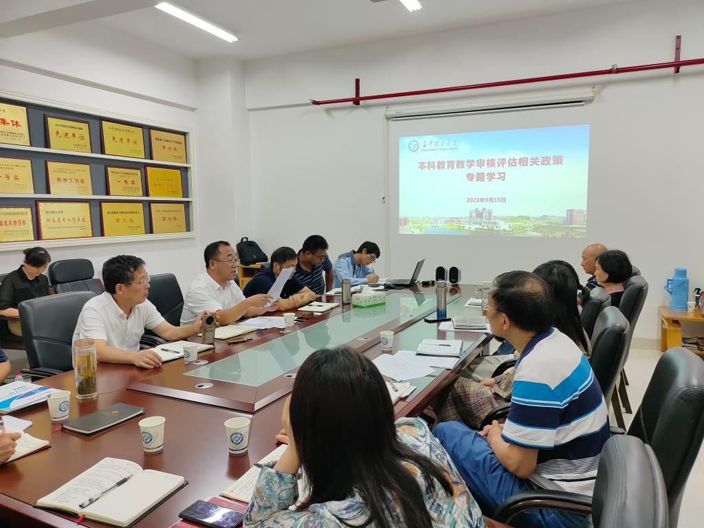 会议学习了教育部和湖南省关于本科教育教学评建等相关文件精神、学校本科教育教学审核评估专家意见交流会重要内容、本科教育教学评估应知应会知识,传达了学校《关于开展本科教育教学审核评估相关政策学习的通知》要求。