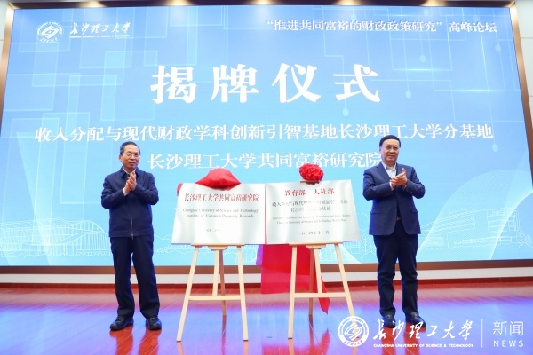 在与会嘉宾的共同见证下,论坛举行了收入分配与现代财政学科创新引智基地分基地和共同富裕研究院的揭牌仪式。