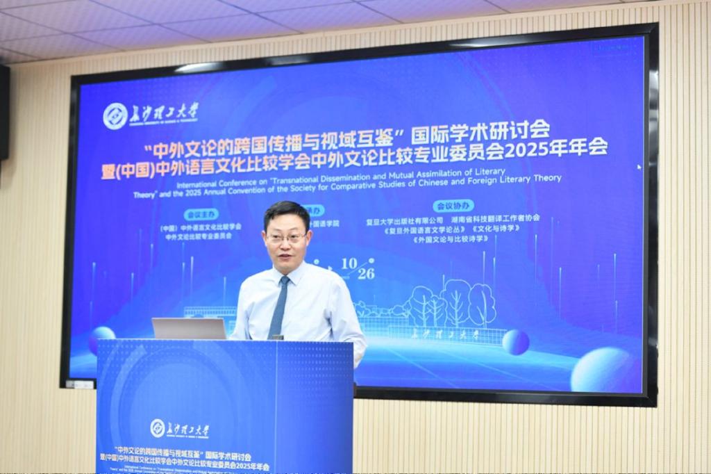 10月24日至26日,“中外文论的跨国传播与视域互鉴”国际学术研讨会暨(中国) 中外语言文化比较学会中外文论比较专业委员会2025年年会在金盆岭校区隆重召开。此次会议由(中国)中外语言文化比较学会中外文论比较专业委员会主办,外国语学院承办,复旦大学出版社有限公司、湖南省科技翻译工作者协会、《复旦外国语言文学论丛》《文化与诗学》《外国文论与比较诗学》协办。来自国内外高校、科研院所的专家学者齐聚长沙,围绕中外文论的跨文化传播与学术互鉴展开深度研讨,为推动全球文论研究的多元发展注入新动能。