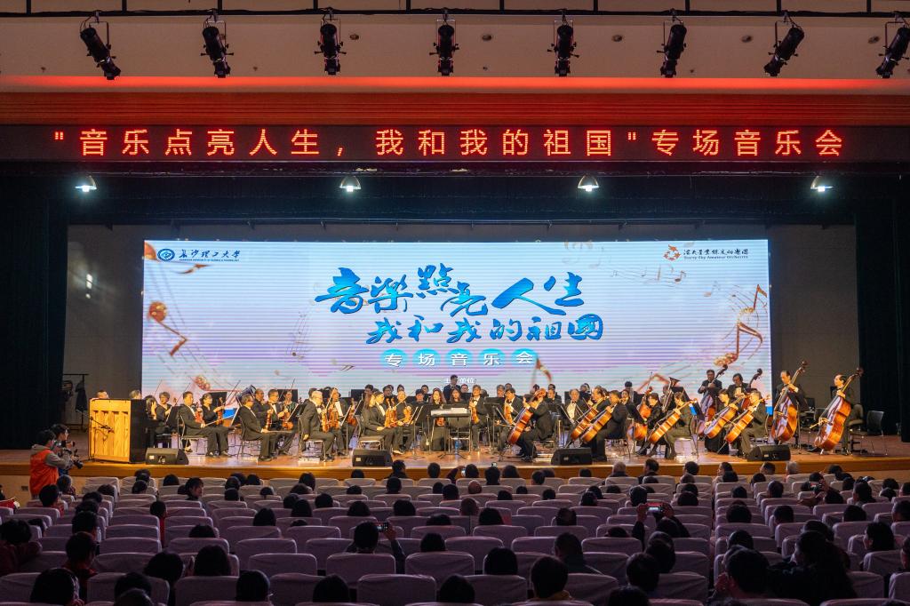 首场音乐会以“音乐点亮人生 我和我的祖国”为主题,于11月23日下午在金盆岭校区5教大礼堂倾情上演。学校在职教职工、离退休教职工以及学生等一千余师生代表共同观演。